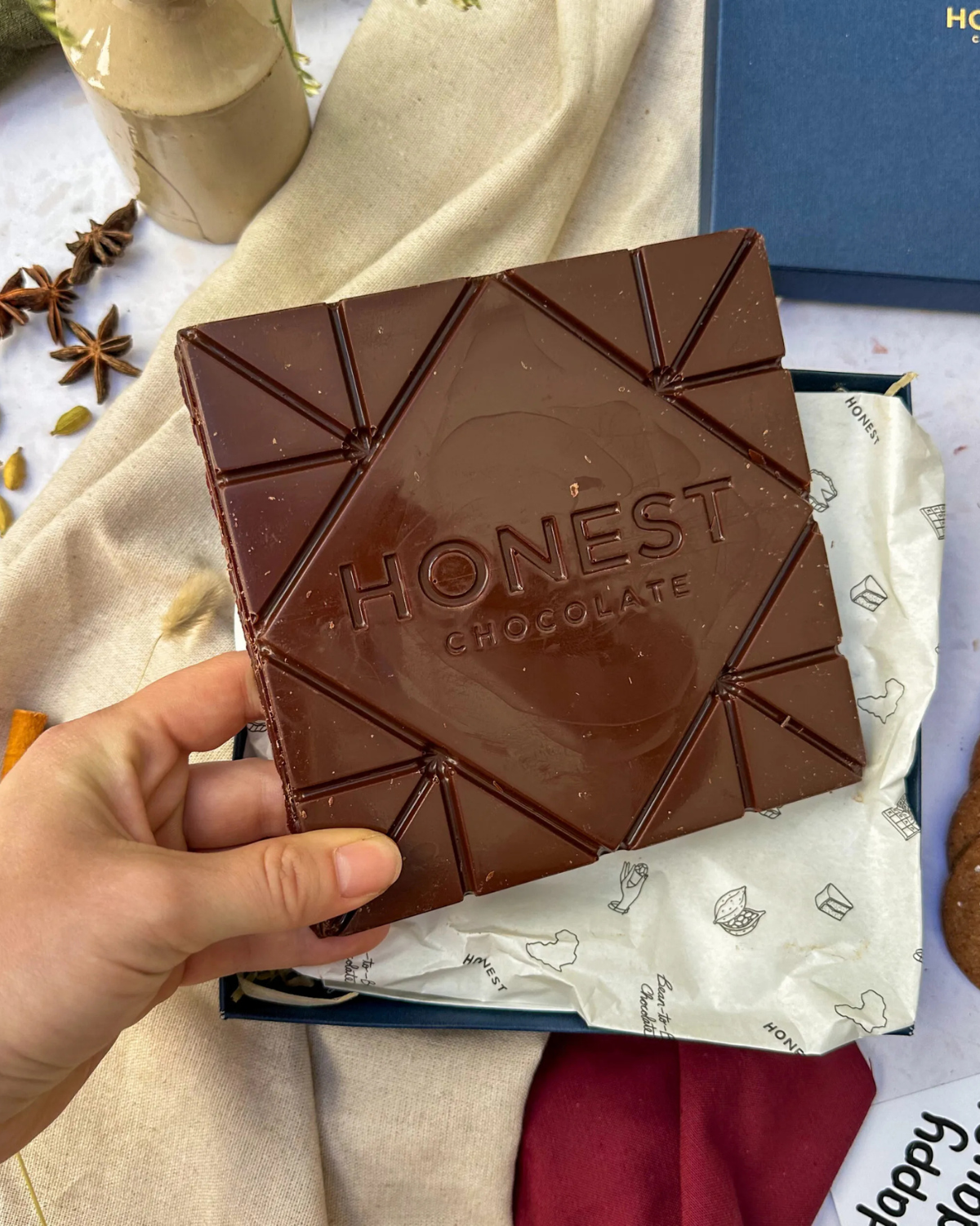 The chocolate itself is dark (mostly 70%), pure, and simple. It’s made using only two main ingredients: organic Tanzanian Cacao and an unrefined sweetener like coconut blossom sugar. They refuse to use dairy, preservatives, or emulsifiers, resulting in a product that is almost entirely vegan and focuses on the true, fruity flavour of the cacao bean.