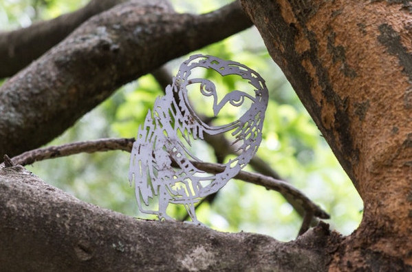 Four months ago, on Nelson Mandela Day, James hung 67 owl sculptures in a grove of yellowwood trees on a hillside in the Wilds. (The number 67 represents the 67 years of service Nelson Mandela had provided to South Africa when Nelson Mandela Day was officially declared on 18 July 2009. 18 July is Mandela's birthday.)